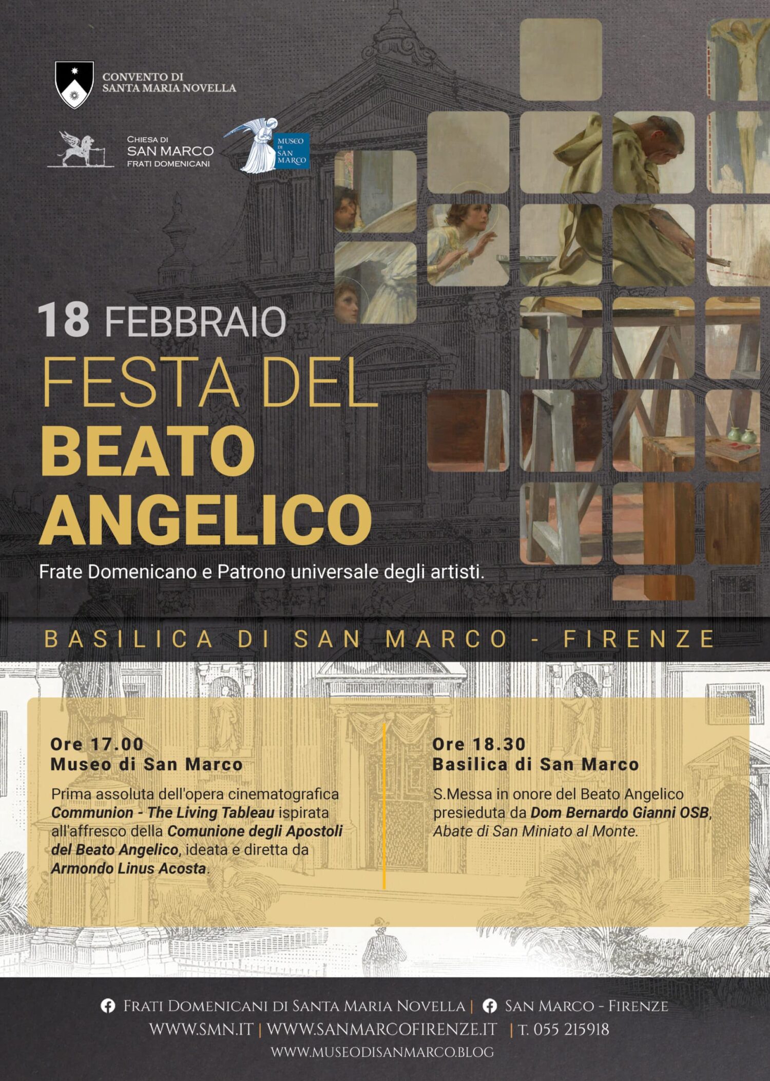 18 Febbraio FESTA DEL BEATO ANGELICO Frate Domenicano e Patrono universale degli artisti Basilica di San Marco – Firenze ore 17:00 Museo di San Marco
